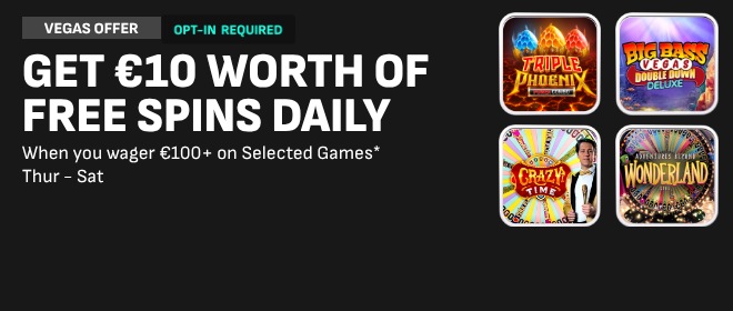 *Opt-in required. Free Spins: max 10 per day 30/04/26 - 02/05/26. Triple Phoenix Power Combo only (3 day expiry, €1 per spin). T&Cs apply.