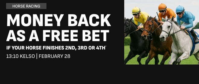 *Max Free Bet £10. 1st cash bet up to £10 must be placed within 48hrs of selected race/s (main market, ex antepost & specials). Win part e/w bet. Free Bet: use in 7 days on sportsbook. Stake not returned. T&Cs apply.
